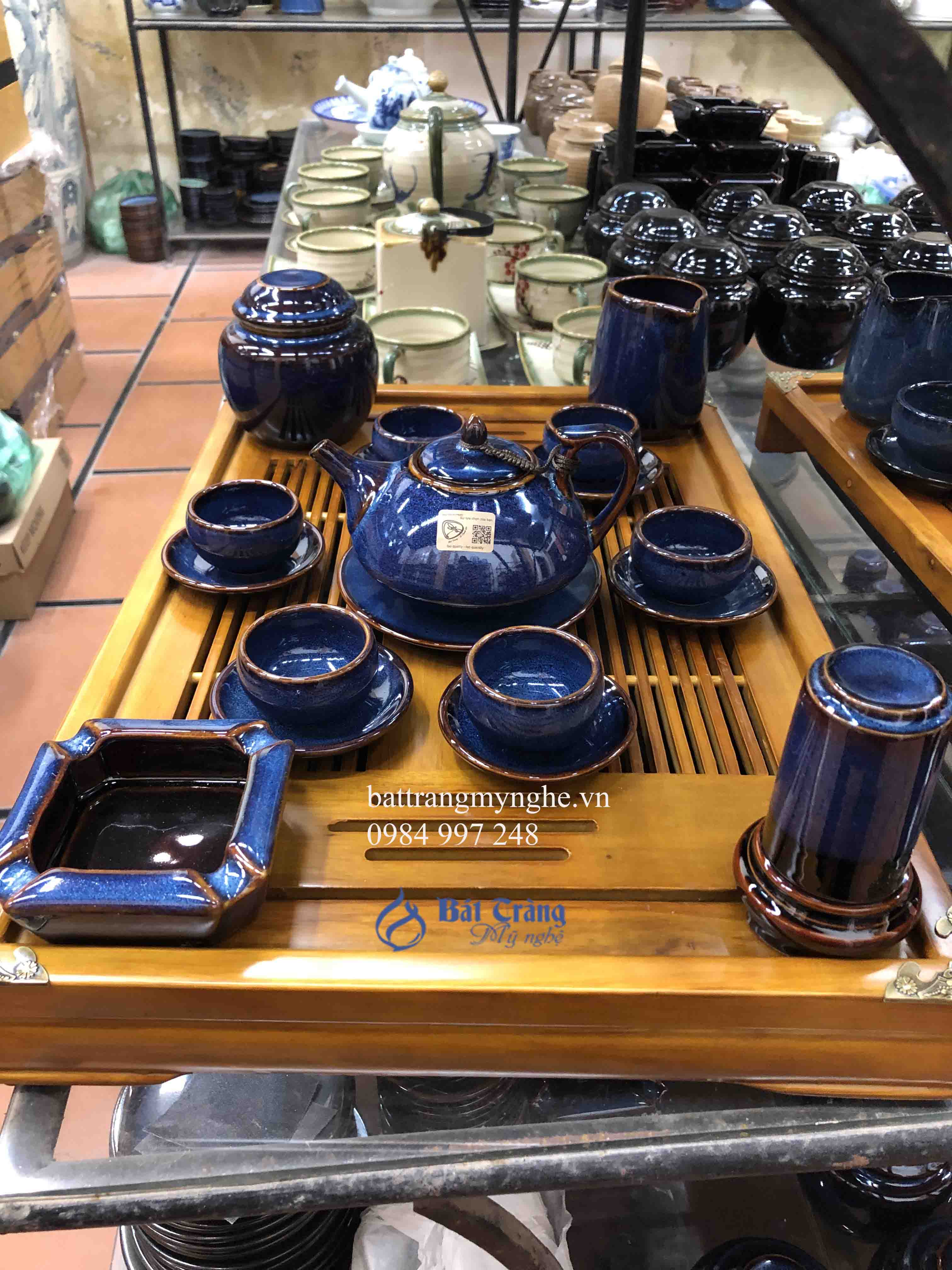 - Sản phẩm bao gồm: 06 chén, 01 ấm, 7 đĩa kê, lọ tăm, hộp chè, lọ đổ nước cặn, gạt tàn, 1 hộp có khóa đẹp đi biếu.