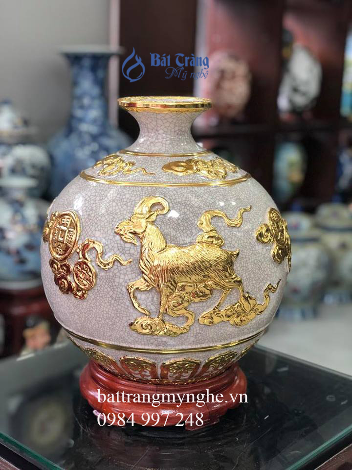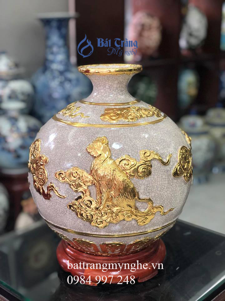 Bình hút tài lộc dát vàng linh vật cao 35cm chất liệu men rạn cổ Bát Tràng