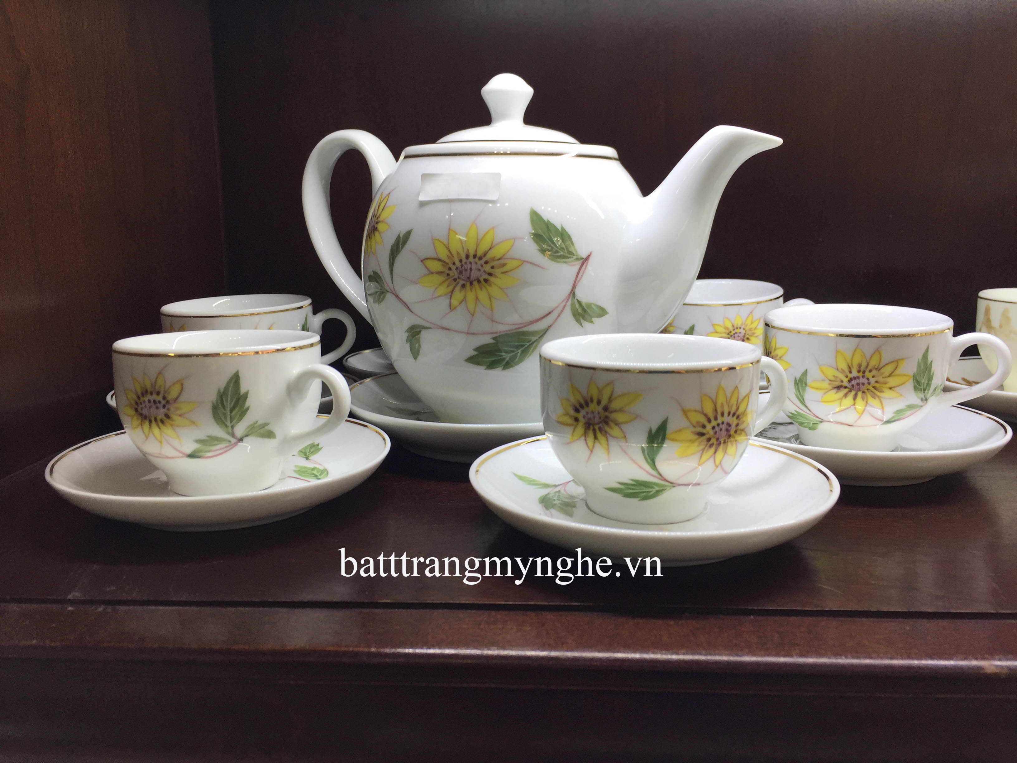 Bộ ấm chén dáng ML vẽ hoa mai kẻ chỉ vàng