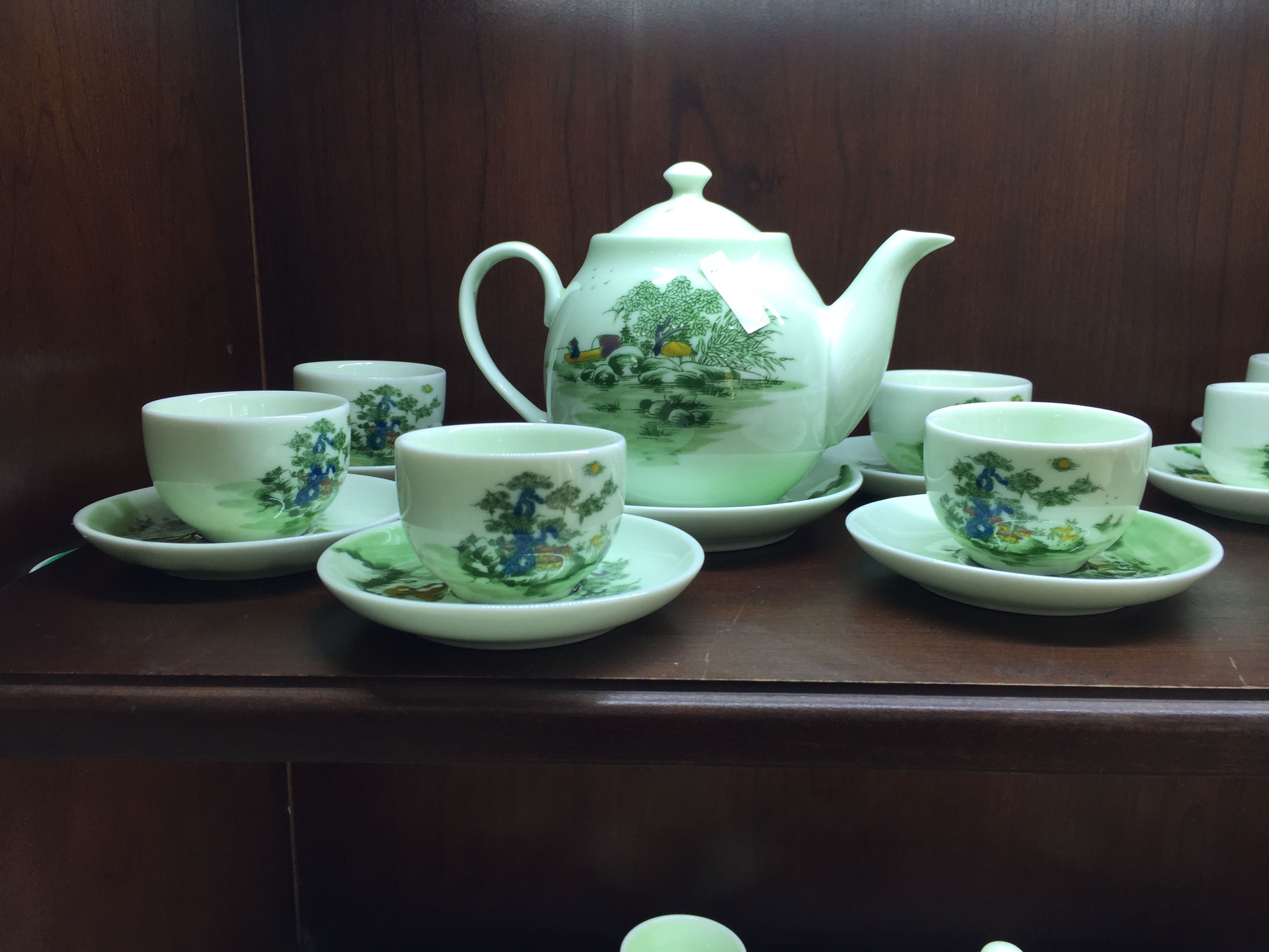 Bộ ấm chén dáng quả hồng vẽ cảnh cao cấp