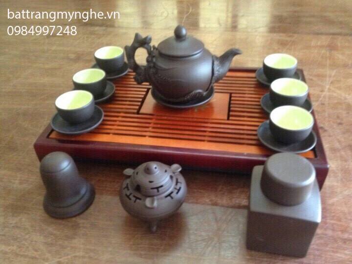 làm từ chất liệu gốm đất đỏ - một loại đất đặc trưng của bát tràng. Trong lòng chén được tráng một lớp men đặc trưng mà không nơi nào có tạo nên vẻ đẹp tinh tế của bộ bình trà, đồng thời cũng giữ cho sản phẩm luôn sạch sẽ sau mỗi lần sử dụng.