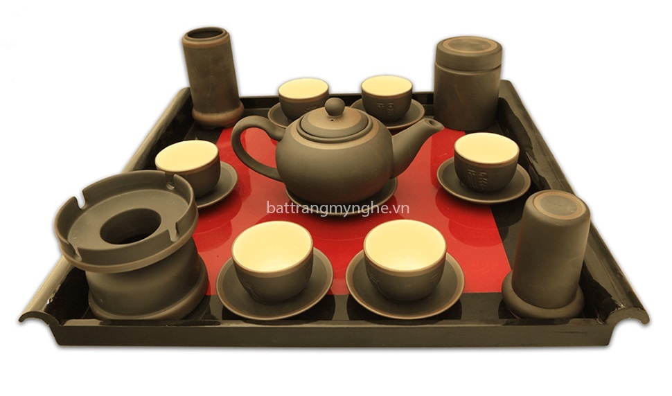 01 ấm, 06 chén, 07 đĩa kê, 1 lọ đựng chè, 1 gạt tàn thuốc lá,1 ống đựng tăm, 1 ống đựng nước
