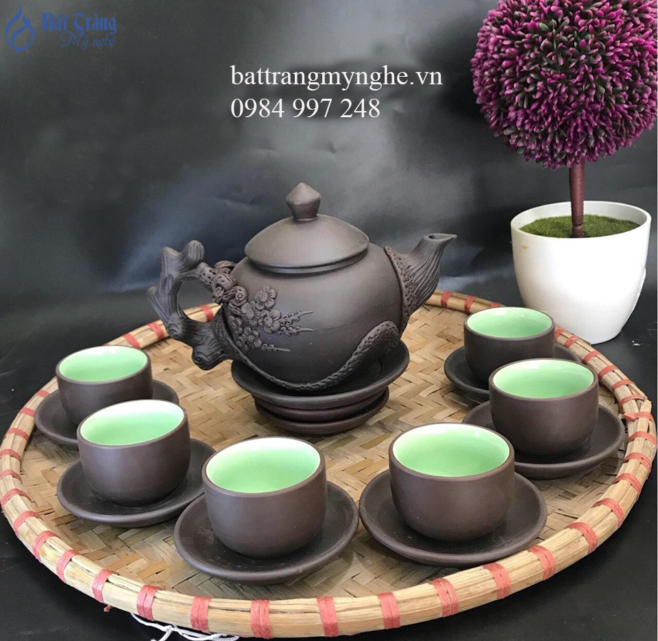 Bộ ấm chén được làm từ gốm đất đỏ, chất liệu đặc trưng của gốm bát tràng. Bộ ấm chén có ưu điểm không bám nước chè. Mỗi lần sử dụng, bạn chỉ cần tráng nước nóng mà không cần rửa bề mặt lại trở nên nhẵn bóng, sạch sẽ. Kiểu dáng thiết kế cũng độc đáo và lạ mắt, mỗi bộ ấm chén là một kiểu dáng khác nhau.