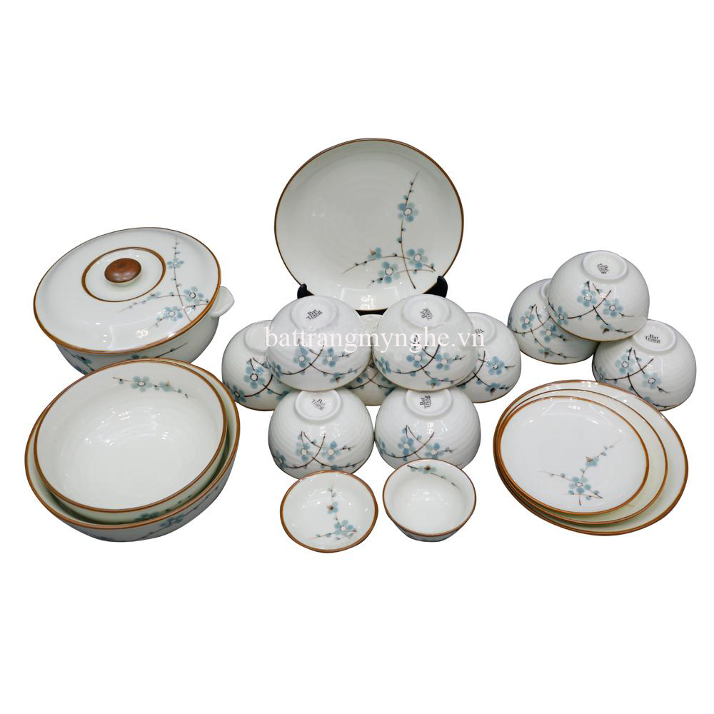 Bộ đồ ăn Bát Tràng được làm từ chất đất cao cấp tạo nên sản phẩm có màu trắng trong đẹp mắt. Họa tiết hoa mềm mại, tinh tế, bắt mắt rất phù hợp với không gian bếp của gia đình bạn