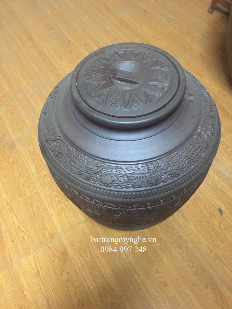 Chum Sành Bát Tràng ngâm rượu không tráng men 100l khắc nổi men đen khử Aldehit được tạo nên từ những bàn tay khéo léo của những người thợ gốm Bát Tràng. Vò ngâm rượu Bát Tràng được nung ở nhiệt độ 1200 – 1300 độ C, vò dày dặn, bền, đảm bảo khi ngâm trong thời gian dài mà không lo dò rỉ. Với uy tín nhiều năm sản xuất chum,vò rượu cho người tiêu dùng chúng tôi luôn luôn mang đến cho khách hàng những sản phẩm tốt nhất về chất lượng và giá thành.