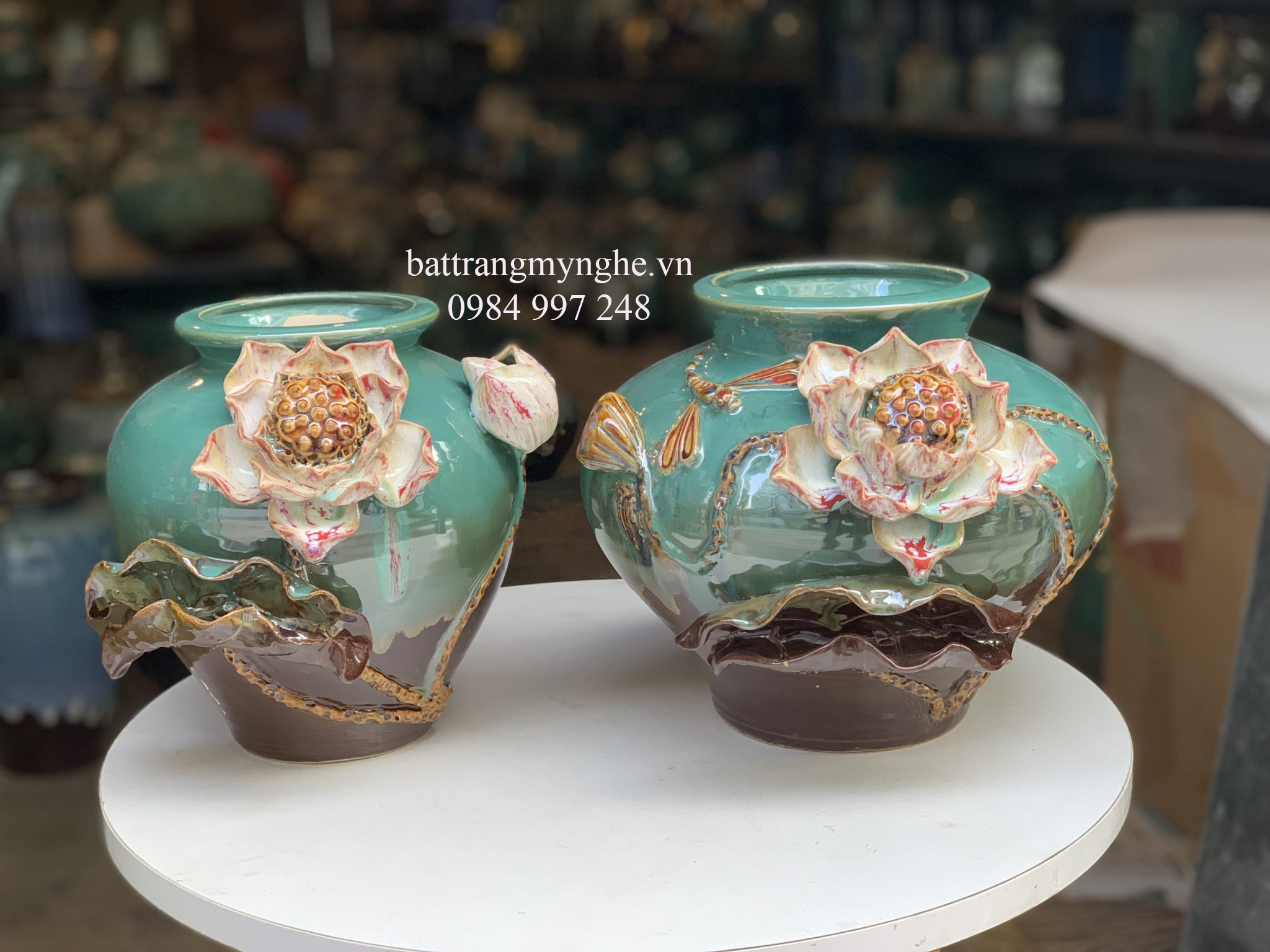 Lọ đắp nổi sen cao 22, 21 (2 kích cỡ)