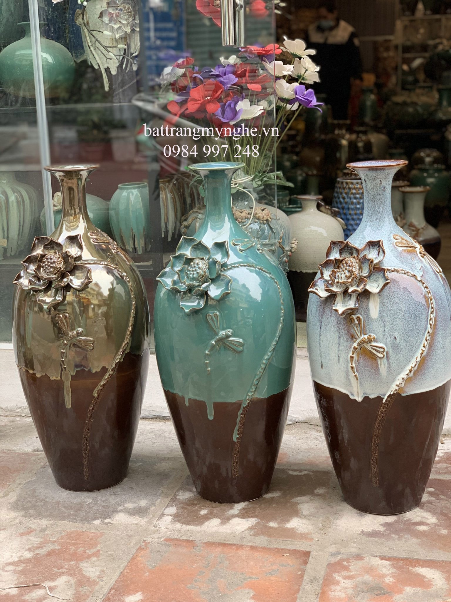 Lọ hoa đắp nổi cổ nhỏ cao 63cm
