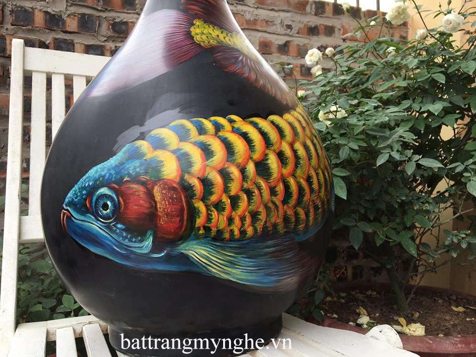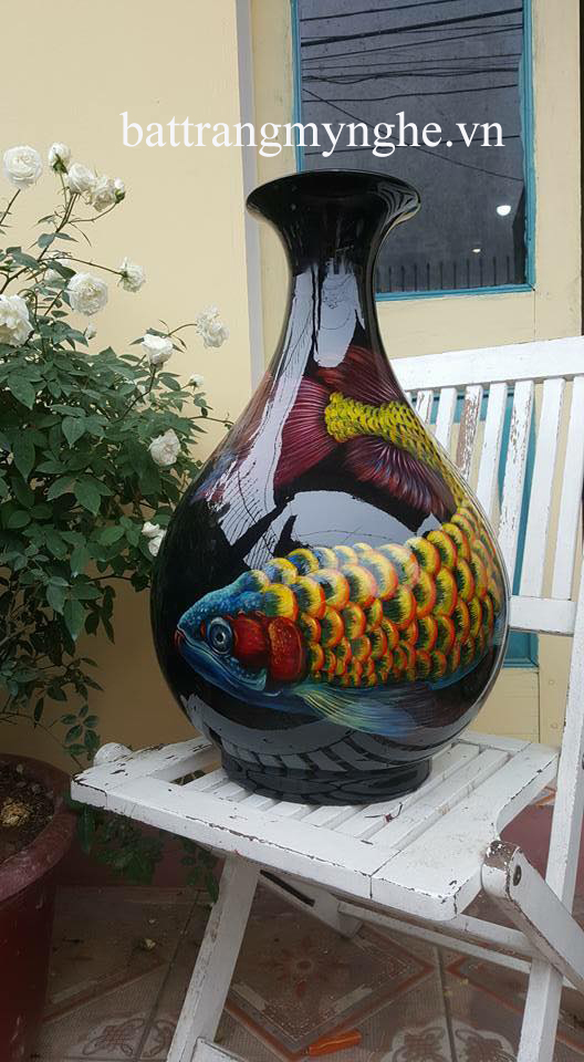 Tên sản phẩm: Lọ hoa tỳ bà cao 60cm vẽ cá rồng hàng kĩ