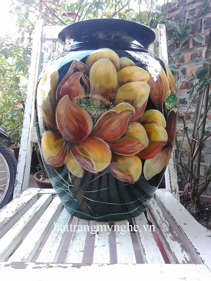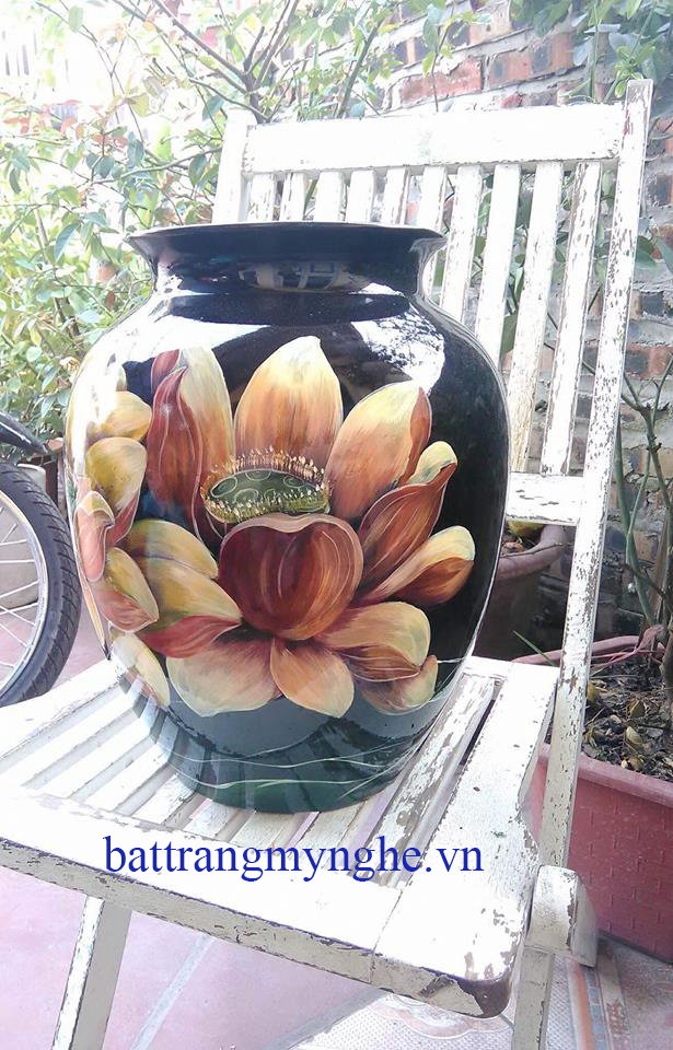 Tên sản phẩm: Lọ hoa vẽ sen cổ to cao 37cm giá 1880k, Lọ hoa vẽ sen cổ nhỏ cao 35cm giá 1480k