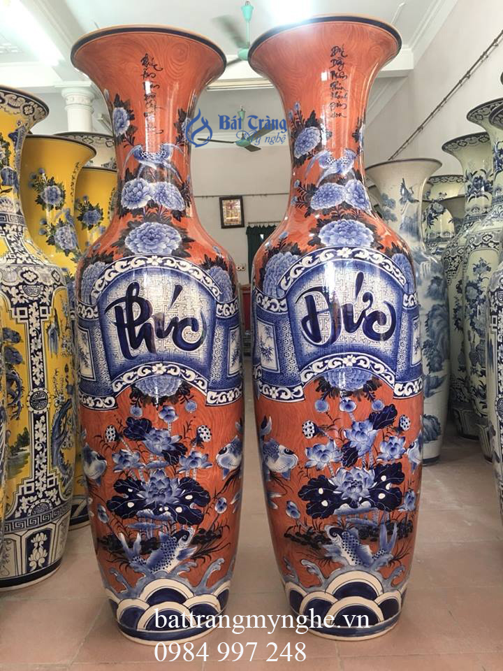 Lọ lộc bình phúc đức men gỗ cao 1.6m hàng kĩ, cả chân đế 15 cm là 1m75