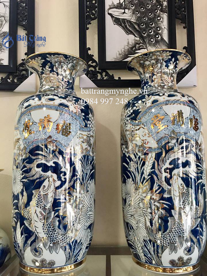 Xuất sứ Bát Tràng. Tiểu lộc bình- Phúc mãn đường - vẽ vàng cao cấp- cao 60cm
