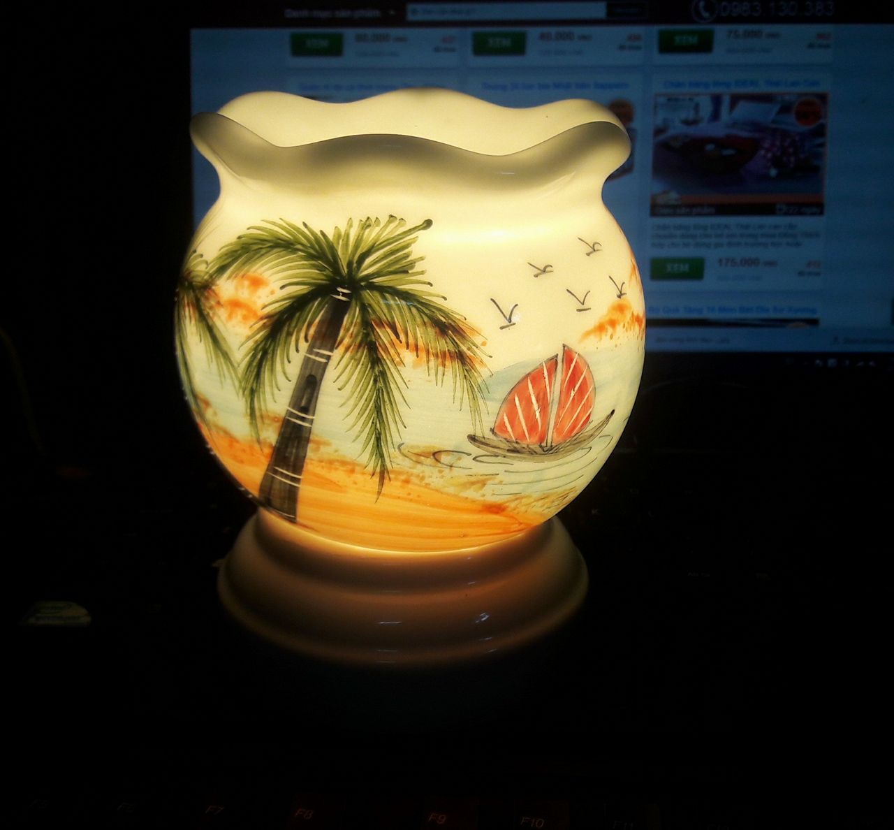 Sản phẩm đèn gốm sứ thấu quang Bát Tràng hay còn được biết đến với cái tên là đèn đốt tinh dầu. Đây là sản phẩm đa năng, mang lại cho bạn một không gian sống thoải mái và ấm áp. Sản phẩm này không chỉ đóng vai trò là một chiếc đèn với thứ ánh sáng dịu dàng mang lại cho không gian của gia đình bạn một sự ấm cúng, yên hòa. Mà nó còn đóng vai trò như một sản vật tạo ra hương thơm, cho không gian sống của bạn một làn hương dịu nhẹ, yên bình.