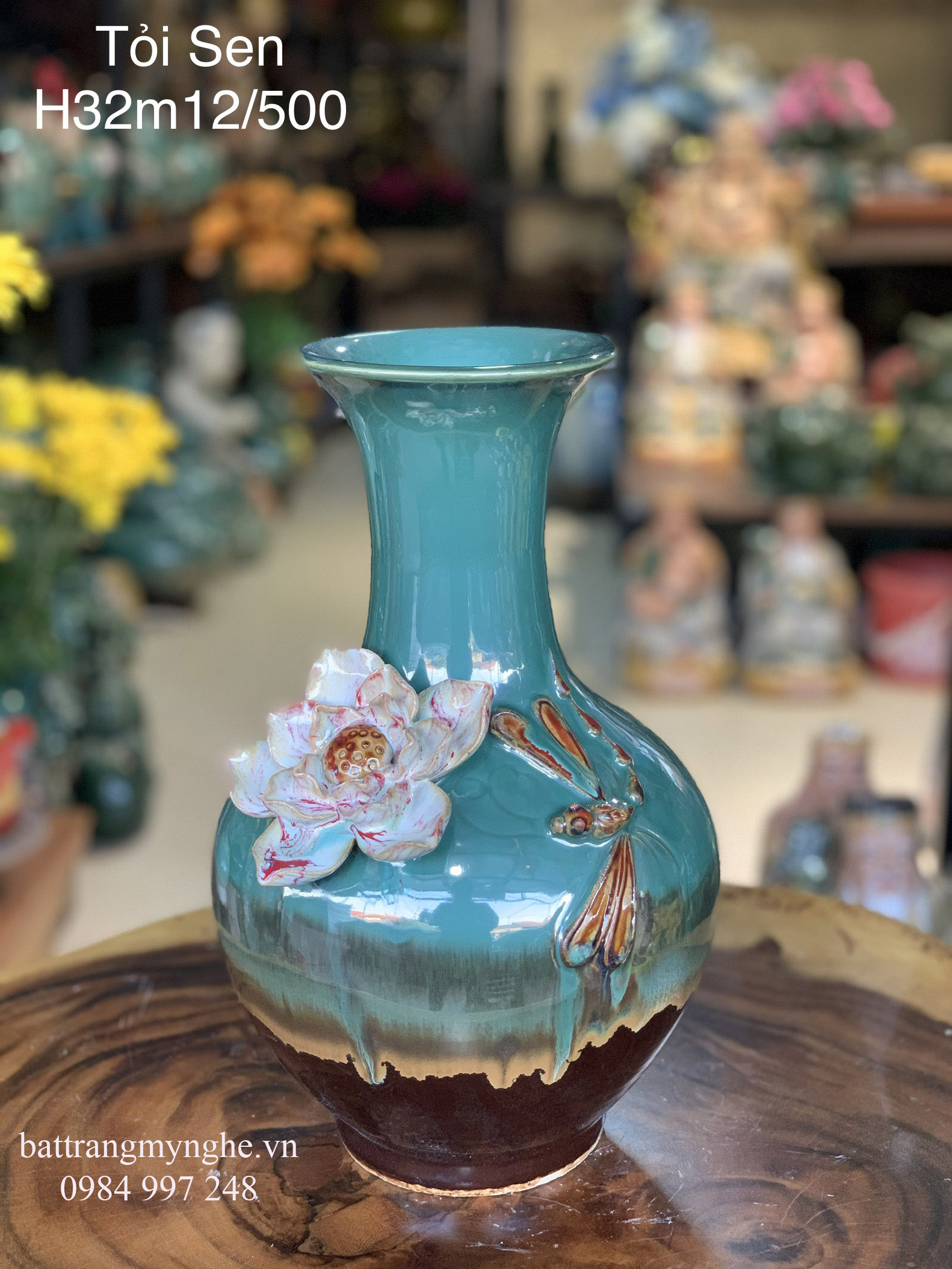 Tỏi sen cao 29cm và 32cm (2 kích cỡ) đắp nổi hoa cao cấp do nghệ nhân Bát Tràng thực hiện