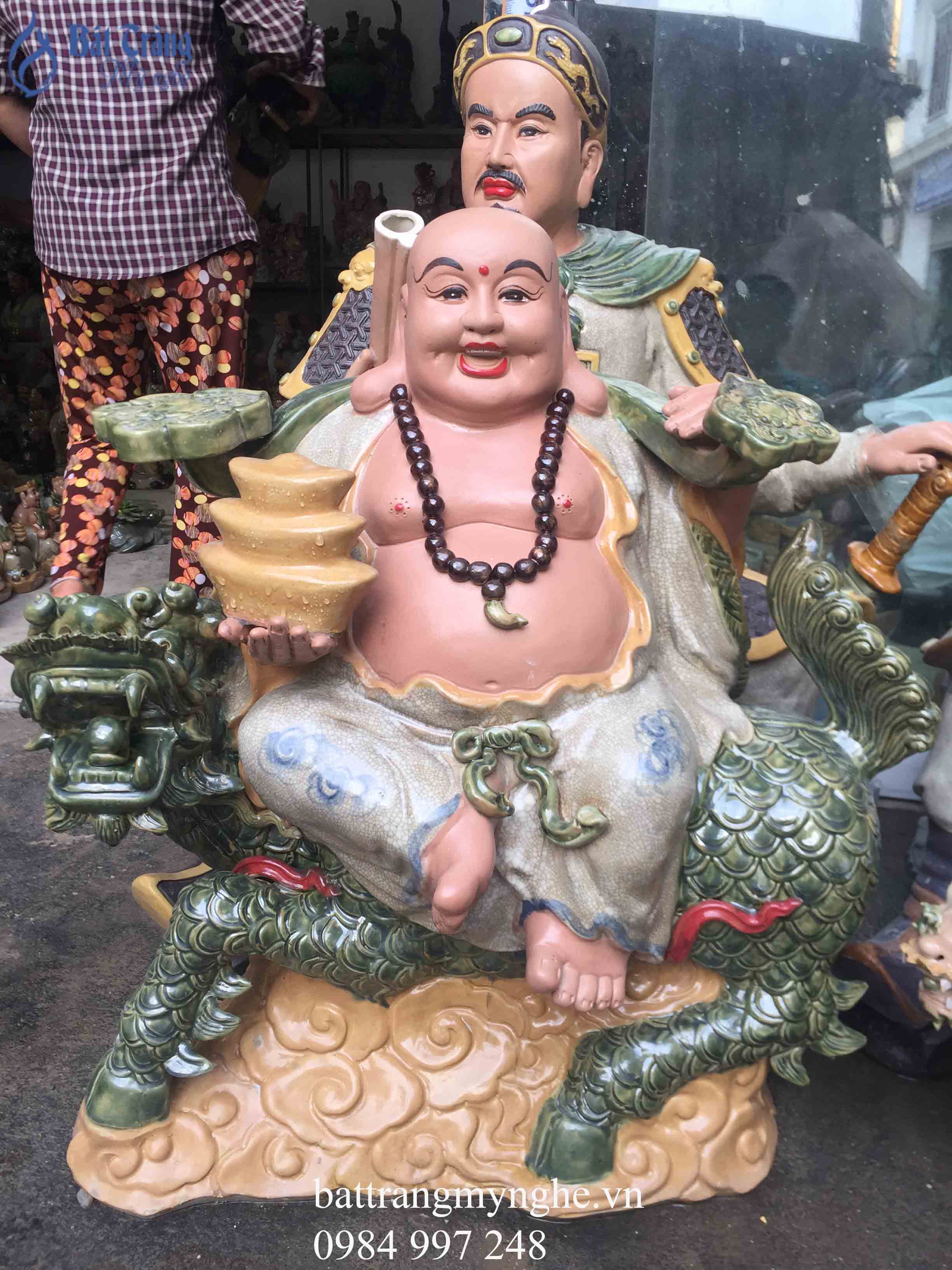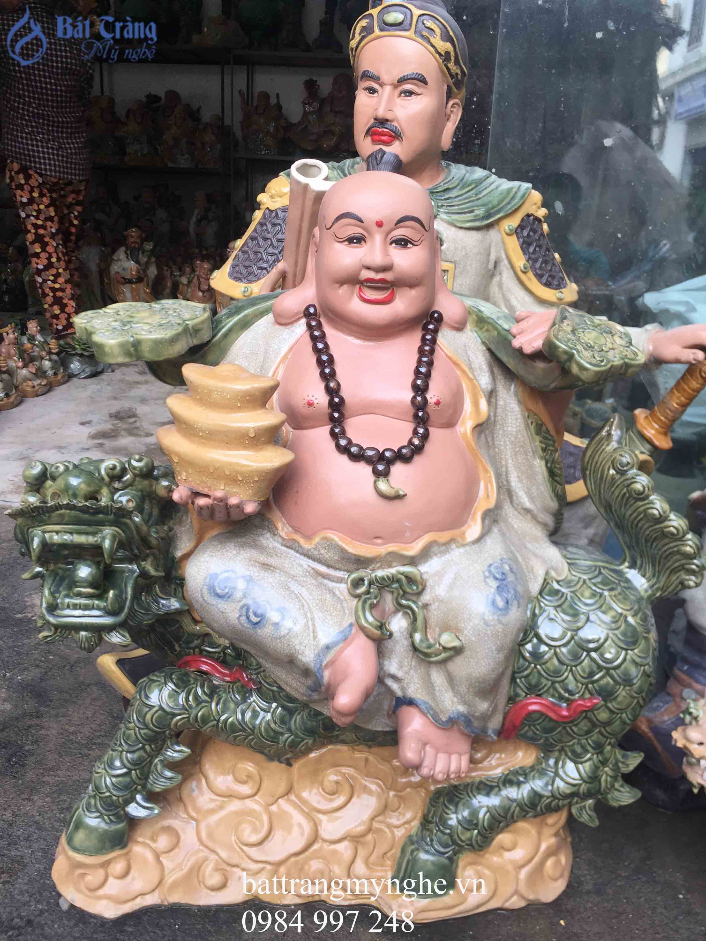 Thông tin sản phẩm:Tượng Di lạc cưỡi nghê men rạn cao 60cm