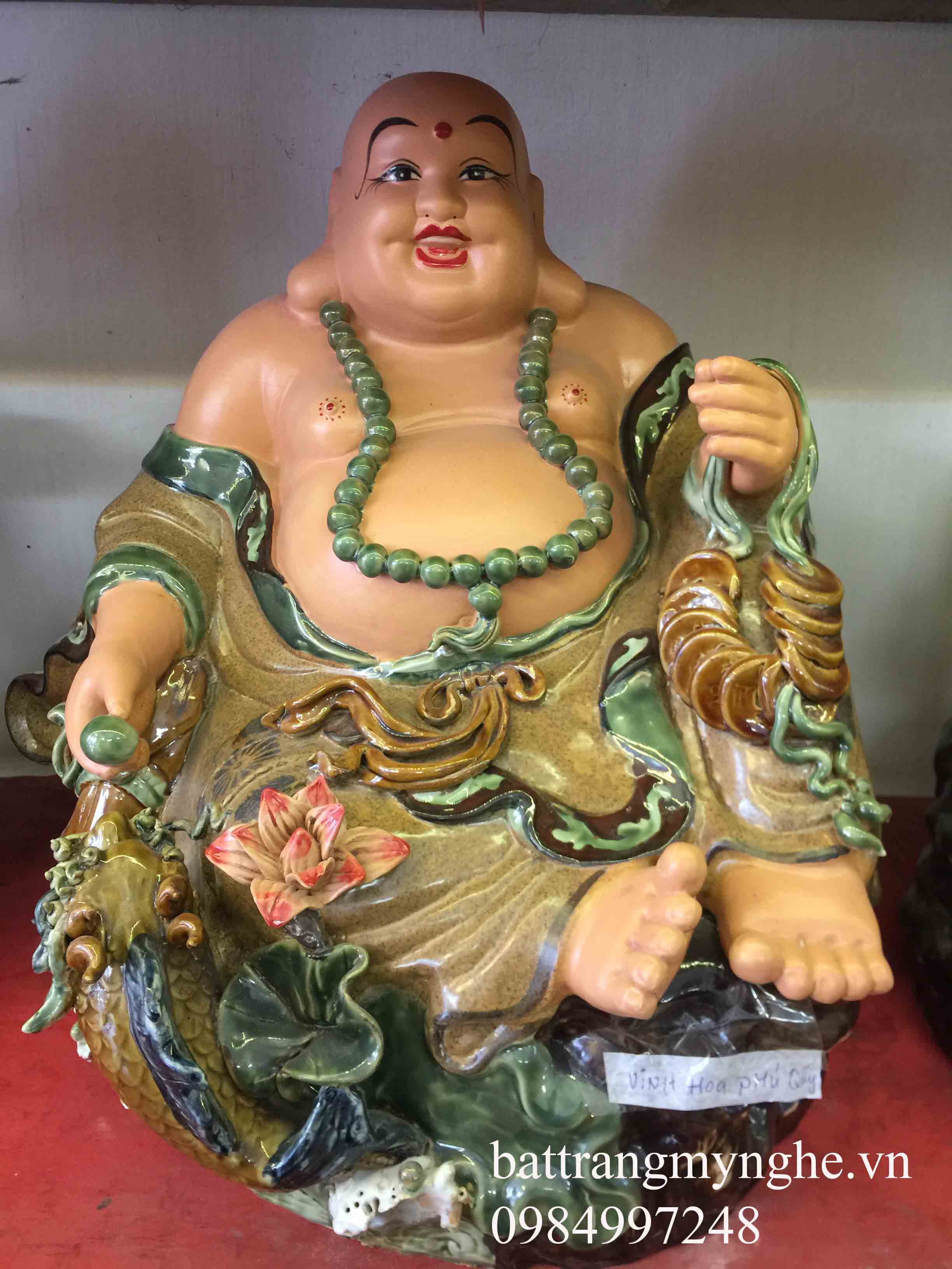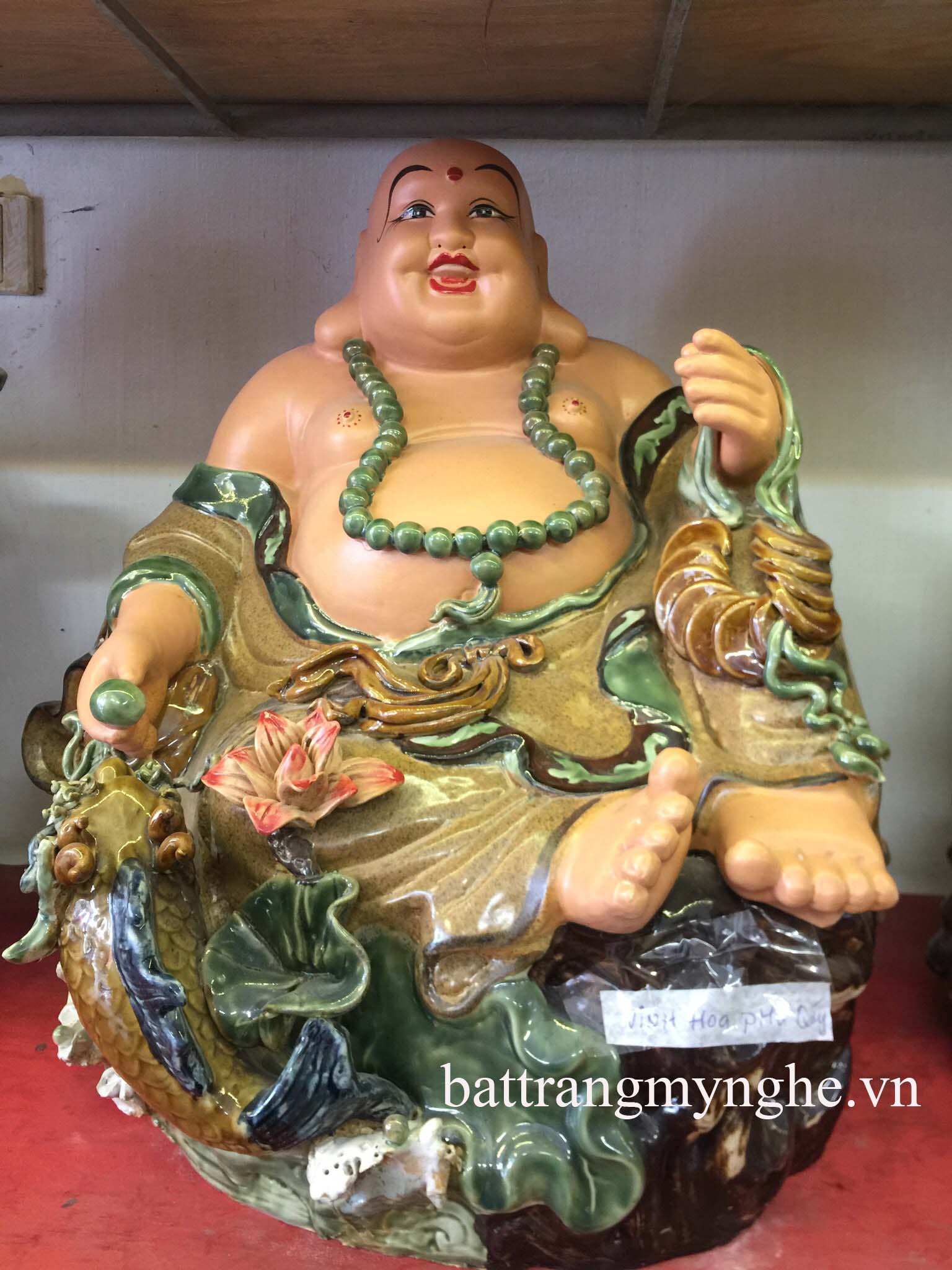Tượng Phật Di Lặc được nung ở nhiệt độ 1200 đến 1300 độ C nên có độ bền rất cao. Bên ngoài được tráng 1 lớp men đặc trưng của Bát Tràng , các hoa văn họa tiết được làm hoàn toàn thủ công mang đậm nét truyền thống của làng nghề.